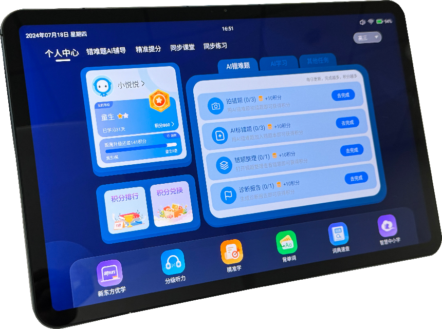 学辅星AI学习机:学辅星AI学习机是一款集成了人工智能技术的电子教学产品,旨在为学生提供个性化、高效的学习体验。该产品通过智能分析学生的学习行为和成绩,制定针对性的学习计划,帮助学生提高学习效率,实现学习目标的精准达成。